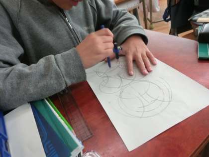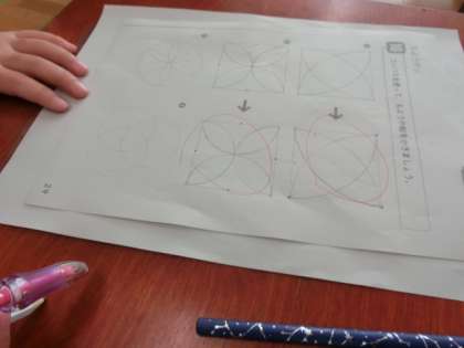 コンパスを使って、絵や模様を描く練習をしました。