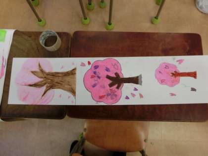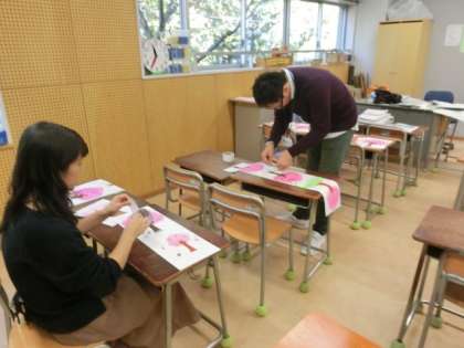 個人面談期間ですが、面談のない先生方が桜の連結作業を行っています。