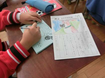 来週行われる就学時健康診断に使うカードを、5年生が作っています。