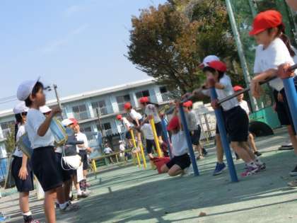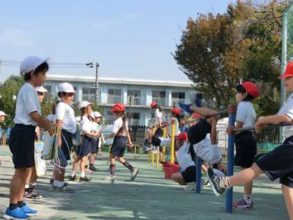 低いところから鉄棒運動の様子を撮ってみました。