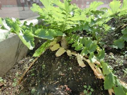 大蔵大根は、葉をいっぱいに広げて太陽の光を浴びています。