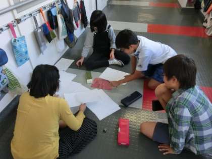 文集委員が、卒業文集の特集記事について相談をしていました。