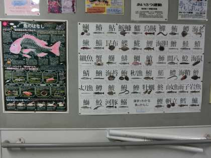 「魚のはなし」、「漢字でわかる魚の漢字」という新しいポスターが校内に掲示されました。