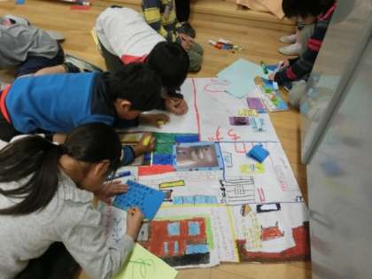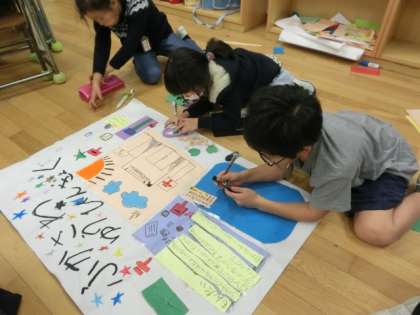 町たんけんで学んだことをグループ毎に新聞にまとめています。