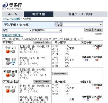 気象庁午前11時発表の天気予報では、明日の東京地方の天気は曇り、朝から夕方は雨。午前6時から正午までの降水確率は70%です。