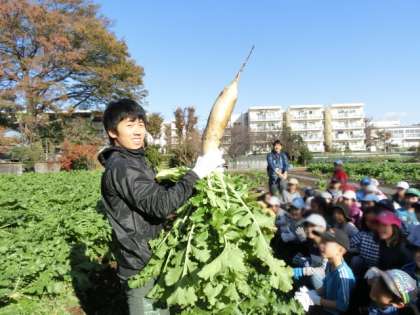 今日、毎年お世話になっている秋山農園へ大根抜きに行きました。