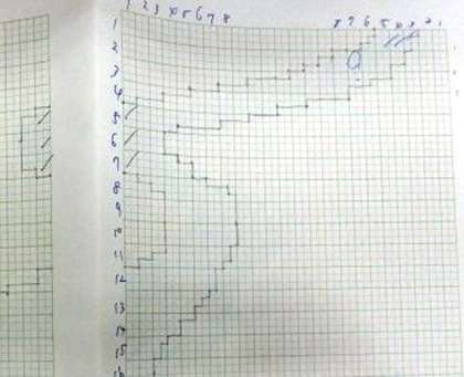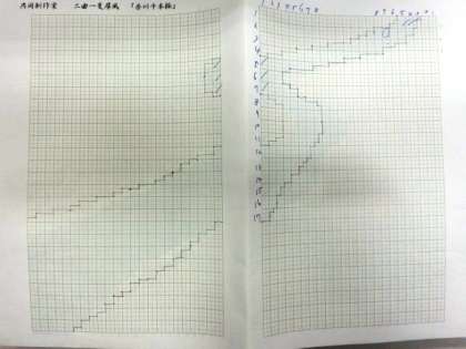 エクセルシートに描かれたネットの網目に、呑川を描きます。