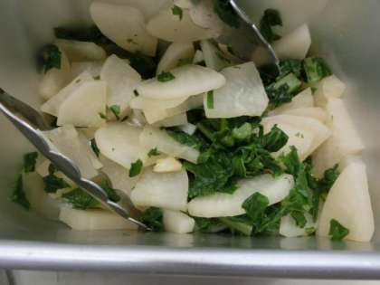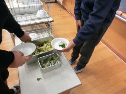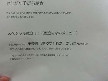 今日の朝、収穫した大根が即席漬けとして、給食にならびました。