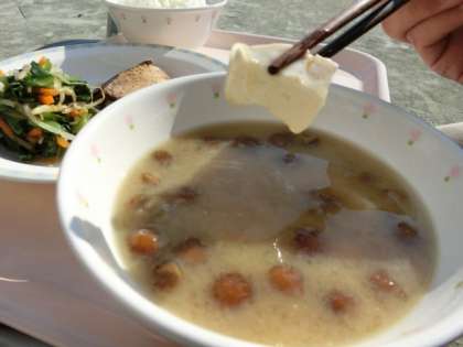 最後に全体の写真と箸で豆腐を持っている写真です。