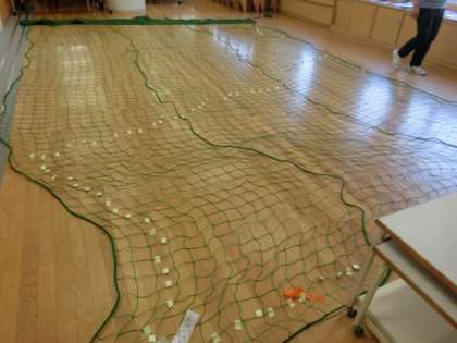 呑川のアウトライン全てのマスに目印の付箋を貼りました。