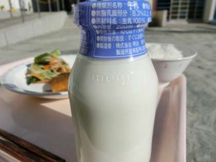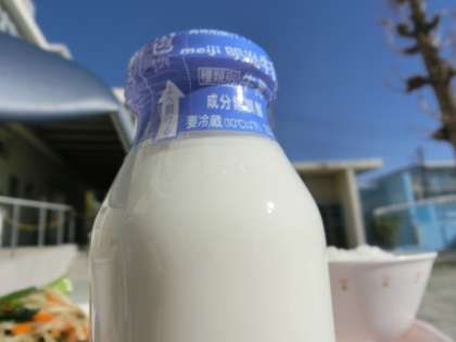 牛乳びんをよく見たら、【meiji】のエンボス加工が施されていました。