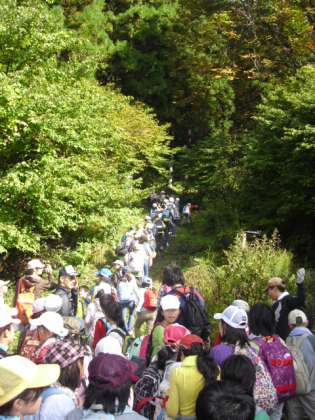 8時50分鉱石山に向けてビレジを出発。心地よい風をあびて森の中へ歩いて行きました。