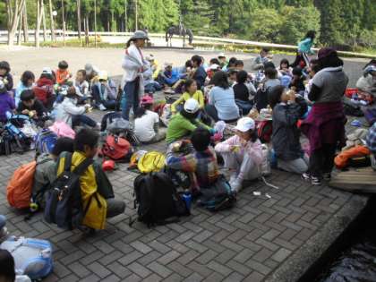 山からビレジには、2時半過ぎに戻りました。ビレジでは、疲れを癒すアイスクリームが待っていました。山に登れなかったお友達もビレジで作品を作りました。