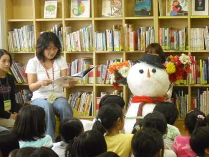 20分休みに絵本の部屋にて、DKO「読み聞かせ」が行われました。今日の作品は、ゲルダ・マリー・シャイドル作『ゆきだるまのさがしもの』です。