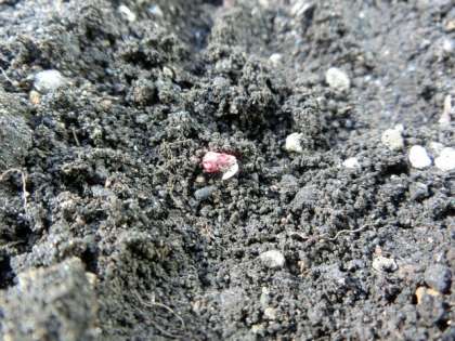水撒きの際に種の変化に気が付きました。まだ小さいですが芽が出ていました。