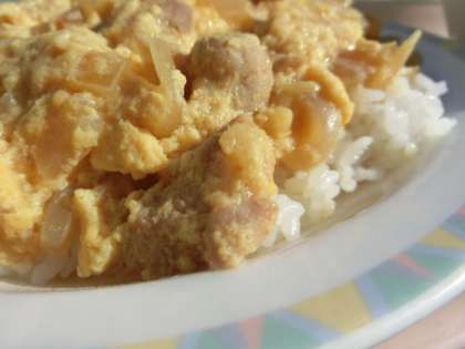 親子丼の具にピントを合わせてみました。