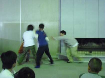 夜のお楽しみは、室内レクです。今日のレクは、各班での出し物です。