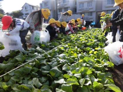 3日前ですが、秋山農園での小松菜採りの様子です。