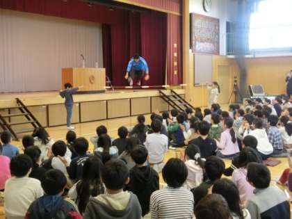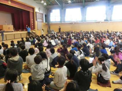 跳躍の前は、児童による手拍子で気持ちを高めます。