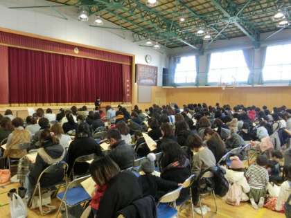 体育館で、新1年生保護者会を行いました。