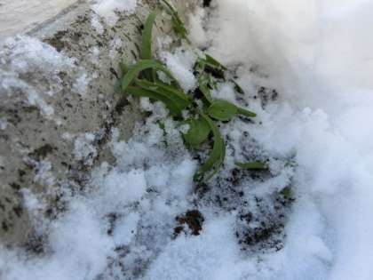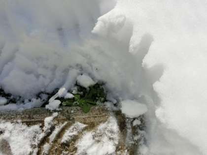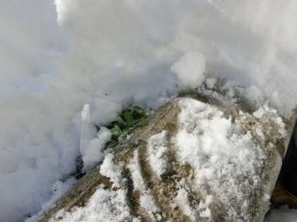 午前中、積もった雪をはらい、ほうれん草の無事を確かめました。