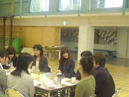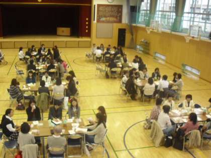 PTA学級代表の研修会チャット「先生とのおしゃべり交流会2010」です。今年のテーマは「体を動かそう 心も体も元気なひがしの子」です。ひがしの子どもたちが今より心も体も元気になるために、先生や保護者とのおしゃべりです。今日は、学校運営委員長さんと学校関係者評価委員長さん、青少年委員さんも参加してくださいました。各グループで、楽しそうに話ができました。10年位続いているひがしの伝統的な研修会です。
