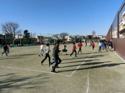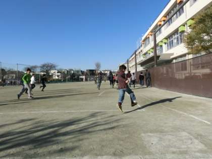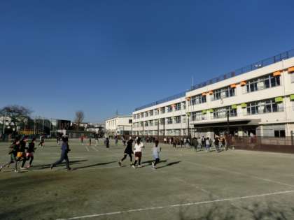 校庭が乾いていたので、たくさんの児童がマラソンの取り組んでいました。
