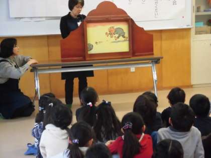 紙芝居では、テンポのよい話を楽しそうに聞きました。