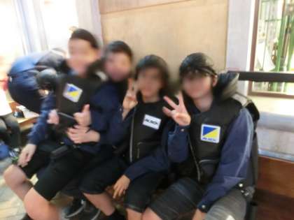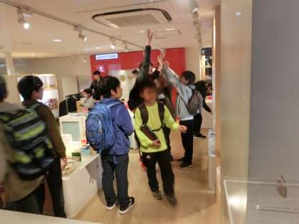 警備会社で体験している様子とデパートでお買いものをしている様子です。