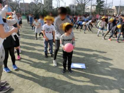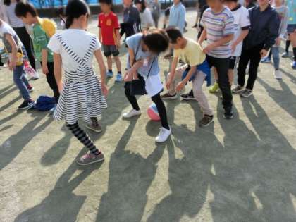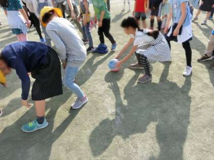 上級生が下級生にアドバイスをしながら、ボール送りを進めています。