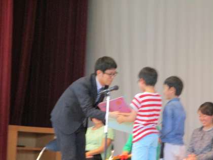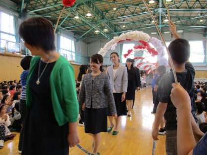 離任式に、東深沢小学校を去られた先生方がお越しくださいました。子どもたちは、久しぶりの再会にとても喜んでいました。代表児童から感謝の言葉を伝え、全校で「さようなら」を歌って笑顔でお別れをしました。