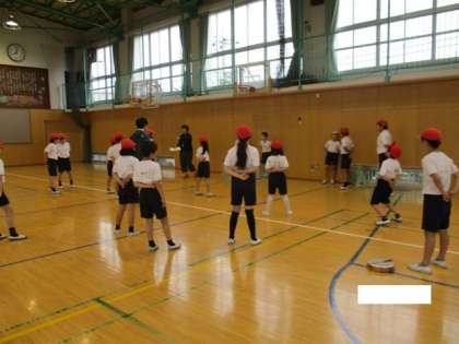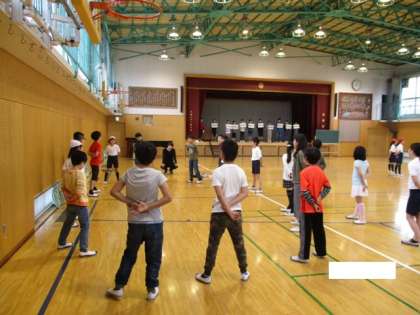 今日は、いろいろな朝練習がありました。舞台で練習しているのが、委員会紹介集会に向けて練習している委員長の子たち。フロアで練習しているのが、運動会の応援団の子たちたちです。みんなが知らないところ、みんなから見えないところで練習を重ねています。