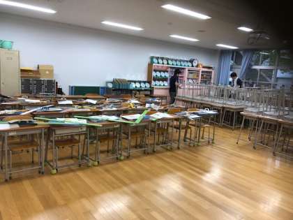 新学期に備え、教職員で分担し、各教室の机や椅子の数を調整したり、白衣をサイズごとに仕分けしたり、算数教具を点検したり・・・。希望に胸を膨らませて登校してくる子どもたちの姿を想像しながら準備に精を出しました。
