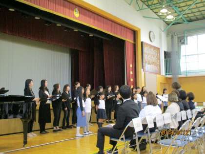 PTA総会が開かれました。30年度のPTAスローガンは「〜植えよう笑顔の種 咲かせよう心の花〜」です。地域の皆様、保護者の皆様と協力をして、ひがしの子どもたちのために取り組んでいきたいと思います。総会後には、親子コーラス隊による素敵な歌声の披露がありました。