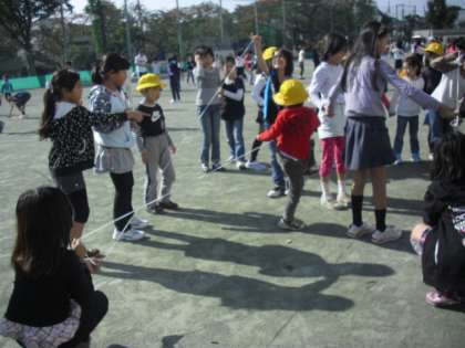 2学期2回目の共遊びです。今日もSケンやなわとび、いろはにこんぺいとうなど、先生と一緒に遊びました。いつも遊んでおる友達だけでなく、はじめて一緒に遊ぶ友達や、お兄さん・お姉さん、妹や弟もいます。この遊びを通して、ひがしの子がますますみんな仲良くなってほしいです。