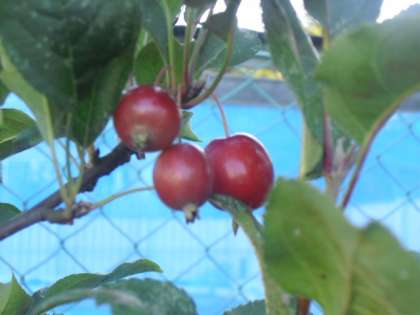 校庭のひめリンゴの木にも赤い可愛い実がついています。校庭の木々にも秋を感じます。