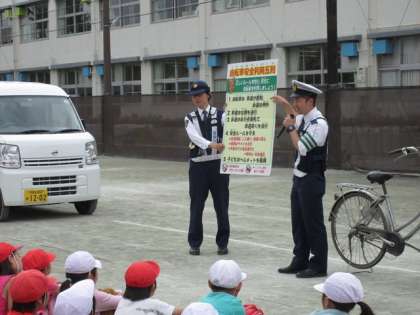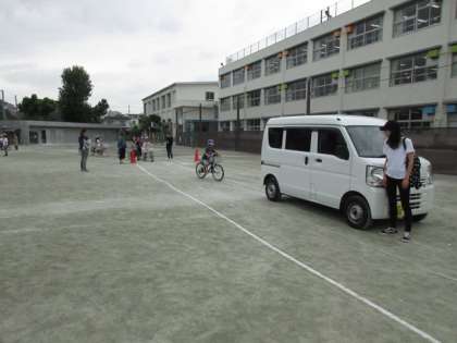 今日は3年生の自転車教室がありました。玉川警察署の方が来てくださり、自転車の正しい乗り方、道の進み方についてご説明くださいました。途中から小雨が降り出しましたが、PTAの皆様の臨機応変な対応で、無事に全員、講習を受けることができました。ありがとうございました。