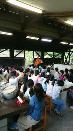 補助員さんによる飯盒炊飯の説明が始まりました。これからカレー作りが始まります。