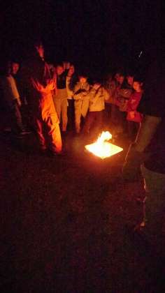 ナイトウォークでは、杉を燃やしてその匂いを嗅ぎました。消臭殺菌の効果があるそうです。みんなで星も見ました。