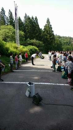 閉校式が行われました。お世話になった、なかのビレッジの職員の方々に皆で御礼をし終了しました。村めぐりに出発します。
