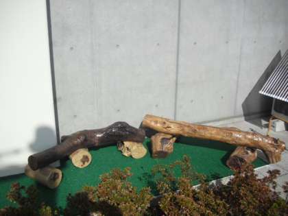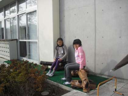 昨年度正門の前のバス通りに植えられた桜の木を植えかえました。ひがしの開校以来の桜の木でしたので、教育委員会の好意で、桜の木の一部を利用してベンチにしてくれました。今日はそのベンチを校長室前に設置しました。コンクリートに直接置くより、人工芝を敷いたほうがいいですねと主事さんの考えで、素敵なコーナーができました。晴れた日には気持ちのよい場所になりそうです。