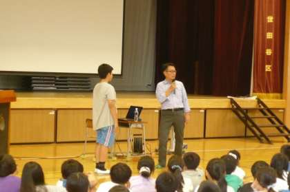 4・5・6年生は、5時間目に「いじめ防止授業」を行いました。講師の瀧田信之先生は、東京都や神奈川県の多くの学校で「いじめ防止プログラム」を実施している先生です。今日の授業では、いじめは心をこわすので絶対にしてはいけないこと、友達のよさを見つめること、そしてまわりの人とよりよい関係をつくる距離を考えることを学びました。これからも道徳の授業や日々の生活を通して、いじめの未然防止に努めていきます。