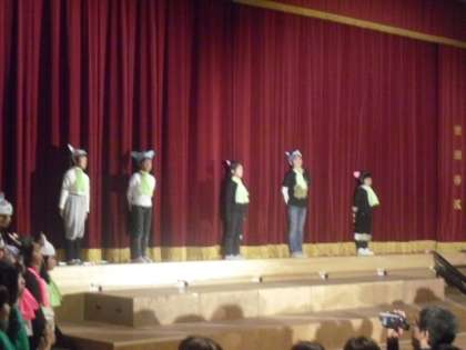 2年生の劇「11ぴきのねこ」の最後に、「12ひきのねこ」という言葉がありました。11ぴきの野良ネコともう1ぴきは、「大きな夢」だそうです。2年生も大きな夢に向かって進んでください。歌声がとてもきれいで元気でした。