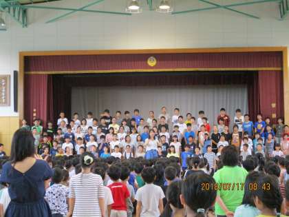 今学期最後の音楽集会をしました。ひな壇の6年生が美しい大きな声で全校の歌声をリードするので、体育館中に素敵な歌声が響きました。教職員も入れて約800人の歌声が圧巻です。