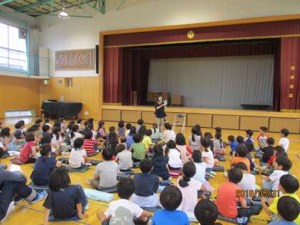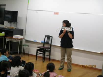 ゲストティーチャ−にご来校いただき、1年生に鍵盤ハーモニカの講習会を実施しました。楽器の出し方や吹き方等の基本をしっかり教えていただきました。軽快な模範演奏を聴いた子供たちは、自分たちも上手く演奏できるようになりたいと目を輝かせていました。