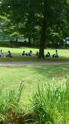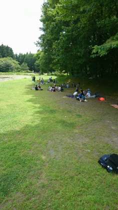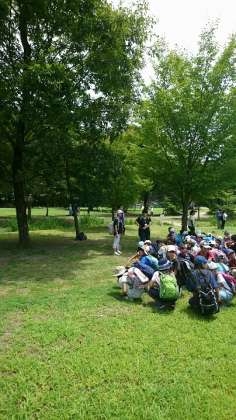 だいや川公園へ到着しお弁当の時間です。風もあり、木陰もあります。45分の昼食時間にしました。11時15分集合です。必ず木陰で食べるように指示がだされました。