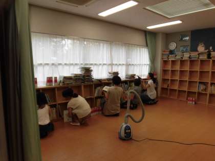 普段は算数室として使われている教室ですが、夏休みは絵本室として使えるように、床や本棚をぴかぴかに磨いてくださいました。