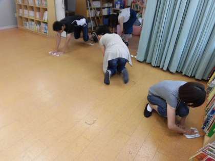 明日からの図書室、絵本室開放に向けて、DKOの方々が大掃除をしてくださいました。