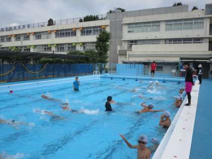 6年生が林間学園から戻ってきた、翌日の26日(木)から夏季水泳教室が始まりました。