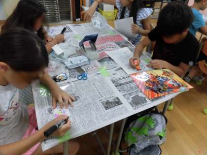ピカチュウやドラえもん、スヌーピーやカービーなど、自分のお気に入りのイラストをプラバンに描き、焼きました。
